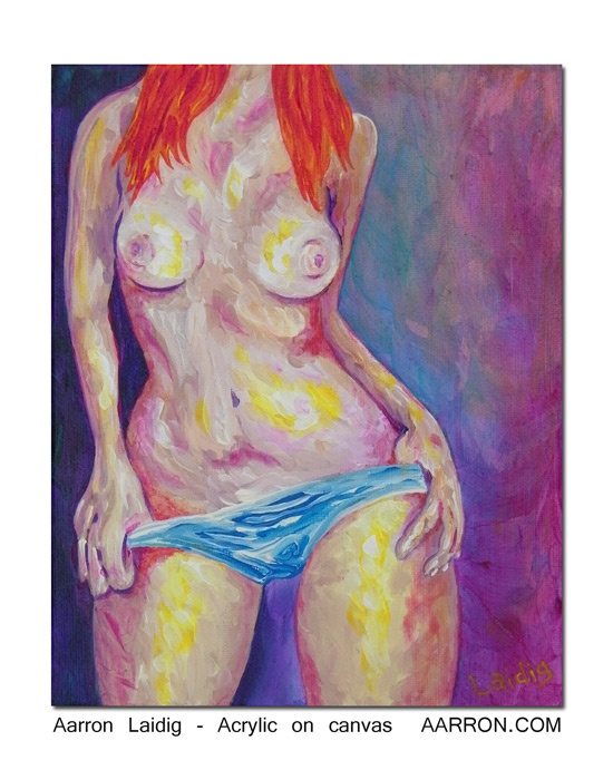 I painted it for an entry in a UK erotic art show, but am not sure I will be entering it now anyway because after talking with another artist I have learned that sales from that  particular show are under 20% and considering the cost of shipping even small paintings to and from the UK I would rather not risk it.