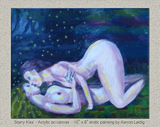 Starry Kiss lesbian dream themed erotic art by Aarron Laidig