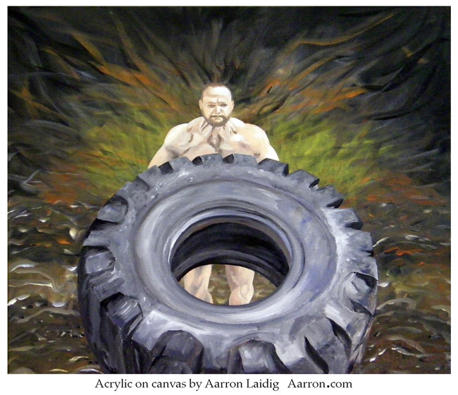 To create this painting I asked a national tire flip champion to pose for me.