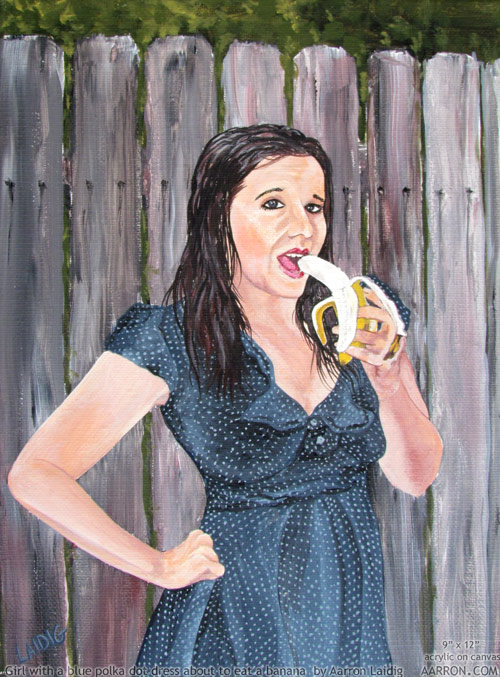 I also sometimes explain that I use these 100% G rated paintings to catch the eye via that suggestive element and push eating bananas as a healthy yum yum treat.