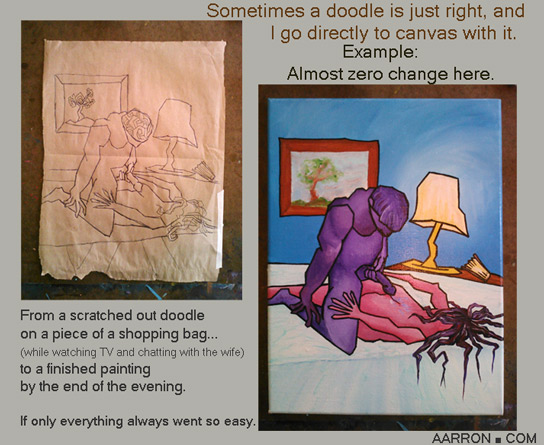 Most of the time I have a multitude of changes go on mentally before my original doodle finds it’s way to the canvas.