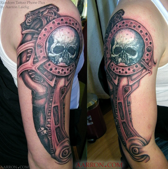 I did the Black Rebel Motorcycle Club skull tattoo three or four years prior to the client coming in for this addition of biomech.