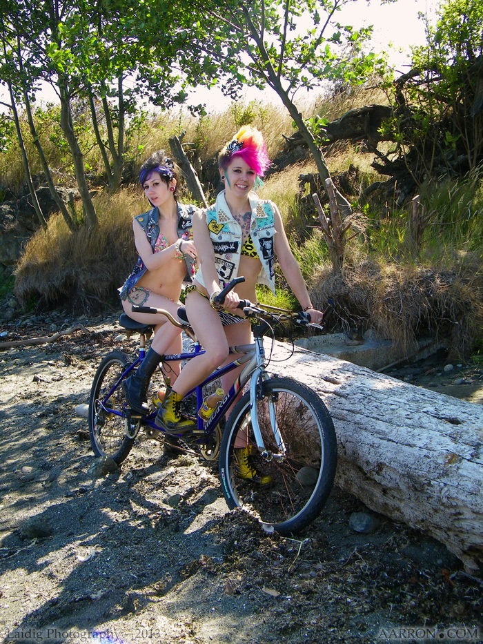 The rear positioned model was pulled in for me color-wise with her hair matching the bike frames color.