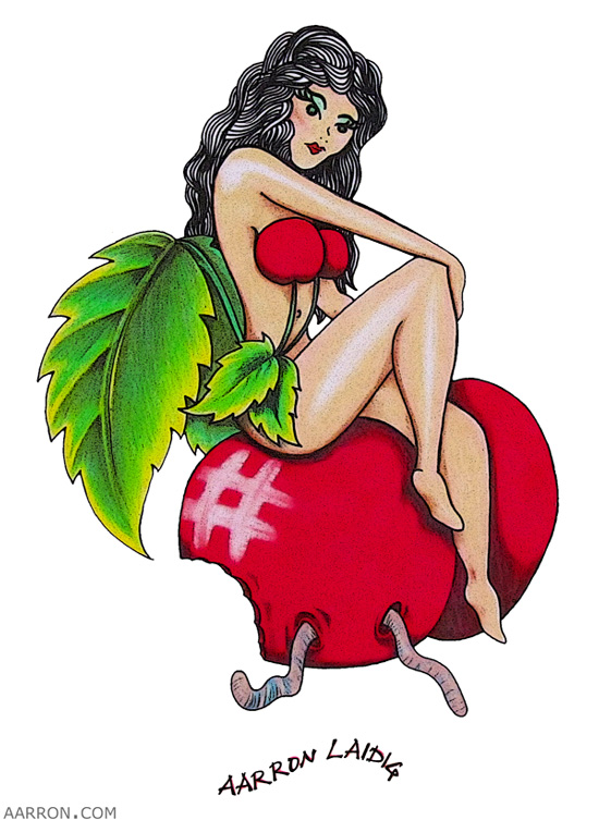 Tattoo styled artwork of a pinup nature with a bit of a twist on the cherry girl theme.