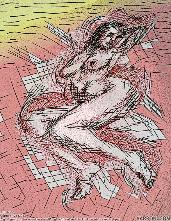 Untitled Sizzle 12142013 Erotic art digital remix of pen and ink nude figure sketch by Aarron Laidig