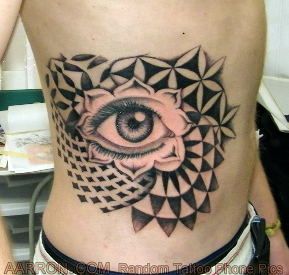 His idea was for a tattoo based on sacred geometry coming out from an eye.