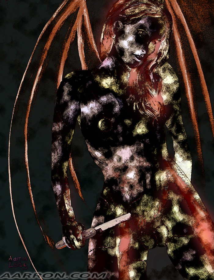 I remember listening to Stabbing Westward repeatedly while painting the original and knocking the easel over a couple times during my late night birthing of the thing by hitting it with my paint brush.
