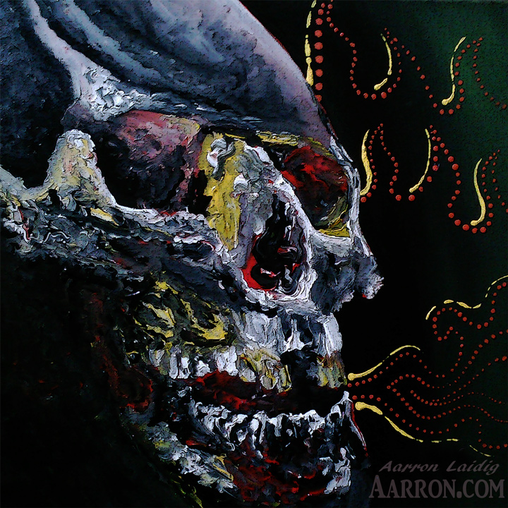 This is a little 12″ x 12″ painting of a skull which I have given the simple title of “Skully 5112015” which is basically a tribute to my mascot and a number that lets me know which skull painting/drawing someone is referencing when it comes to sales , prints, and other stupid stuff I need to keep track of sometimes.