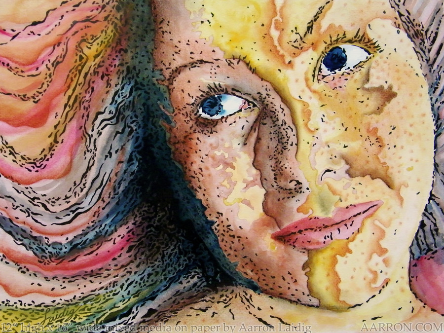Once I broke the watercolors out however I had a change of heart and used more fleshy hues. Burnt sienna and burnt umber along with various yellows mostly. No clue why I changed my mind, but that is the point in random doodle style art making… To NOT restrict oneself like we artists often must when working for our daily bread and fulfilling the request of our clients and patrons.