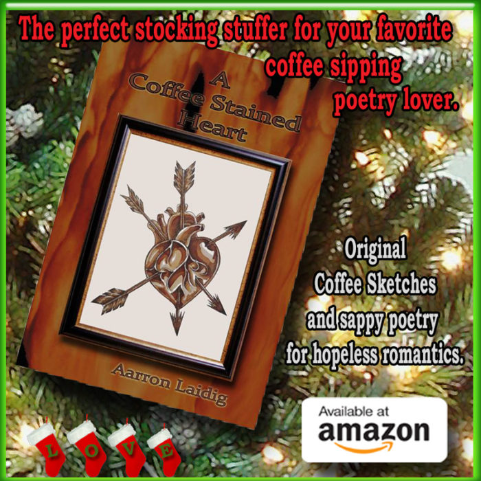 My book is filled with heartfelt poetry of the lovesick variety and illustrated with sketches done in ink and regular coffee.