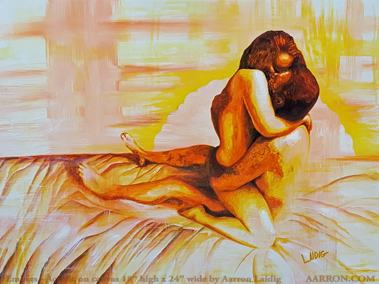 I named it Embers because that is what I was thinking of when painting it. Two embers in a fire together. The heat of each increasing that of the other and they are in a sense one being where that heat comes together.
