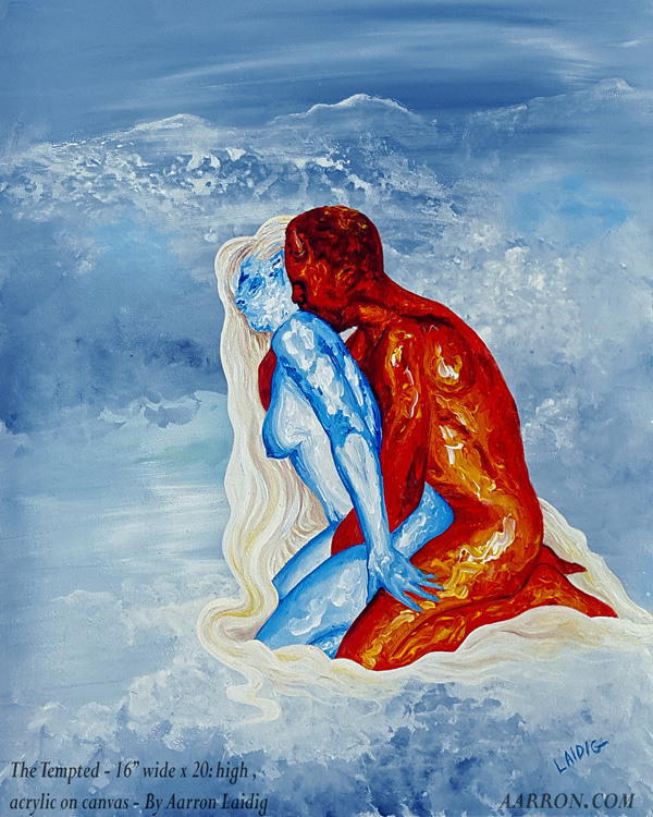 In my mind as I was painting it I was thinking it was the angelic figure tempting the demonic one.