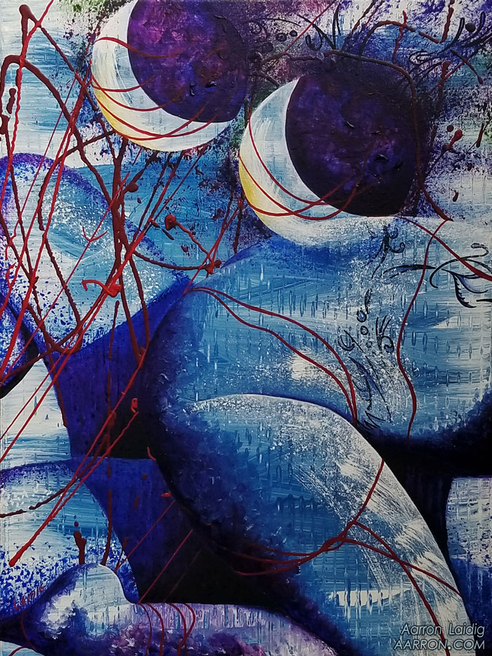 Measurements are 18″ wide x 24″ high on stretched canvas done in acrylics.
