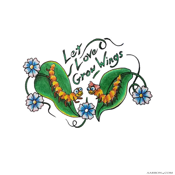 Let love grow wings… two caterpillars meet and together they know their future will be beautiful. Beautiful like floating on the breeze as butterflies with pretty wings.