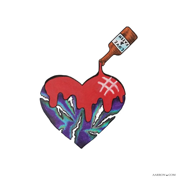 Love and faith pouring onto a broken and bruised heart to heal it. Yes, love and faith can heal a broken heart. If only we could buy it in a bottle.