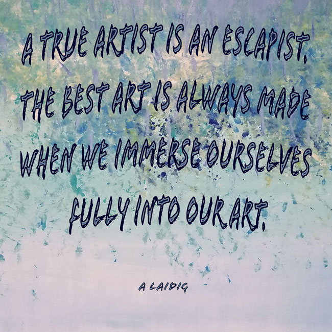 A true artist is an escapist. The best art is always made when we immerse ourselves fully into our art.