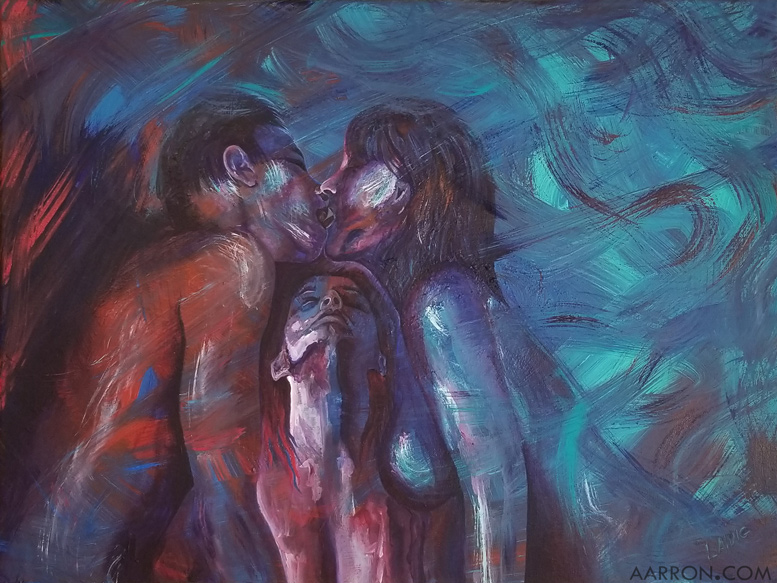 Triumphant Submission, full of ecstasy, bliss, rapture… dionysian, a ménage à trois gone right, the perfect threesome, a third eye sacred sexual moment… yeah, F if I know.